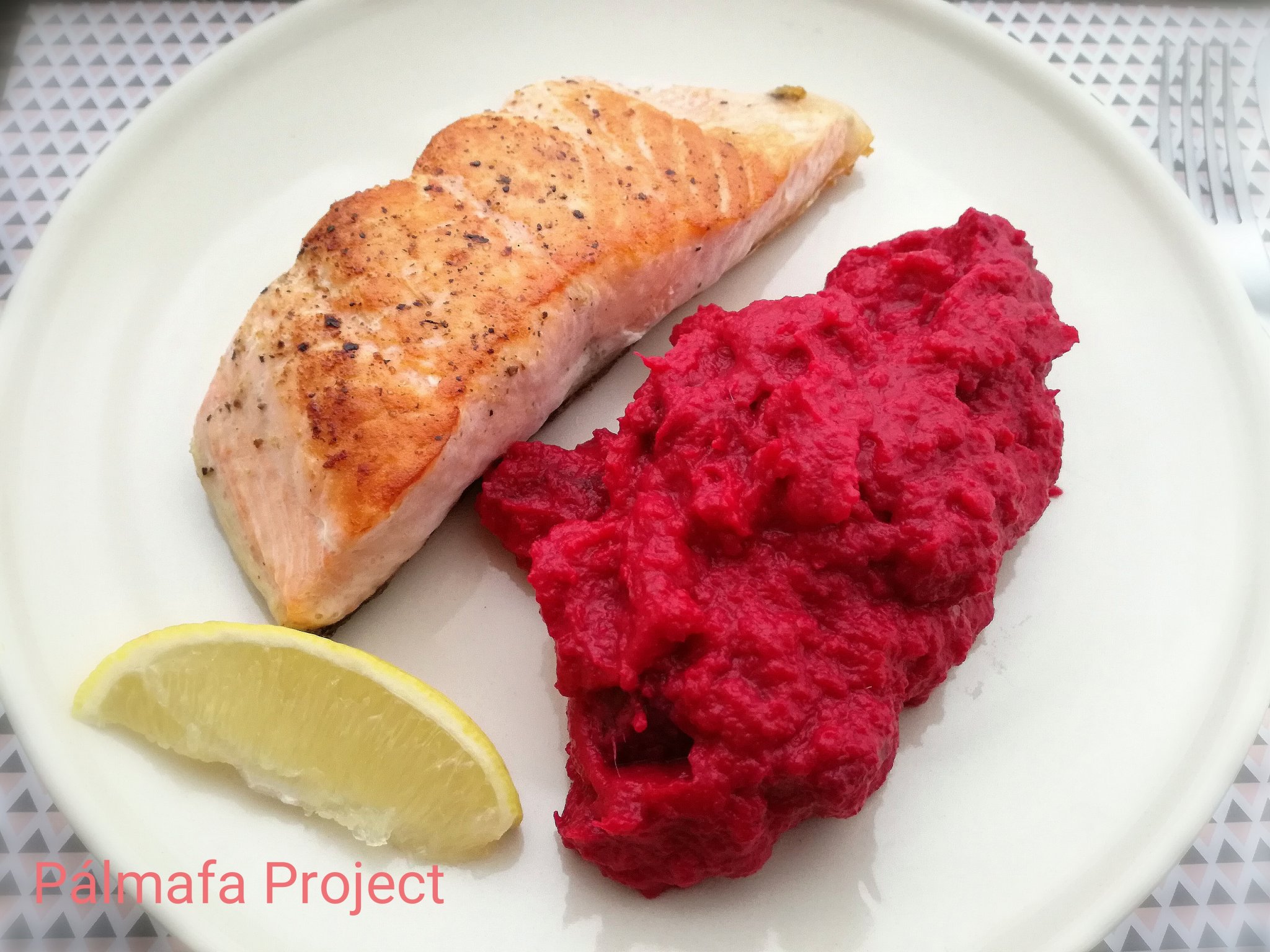 4. Lazac, tormás céklás édesburgonyapürével