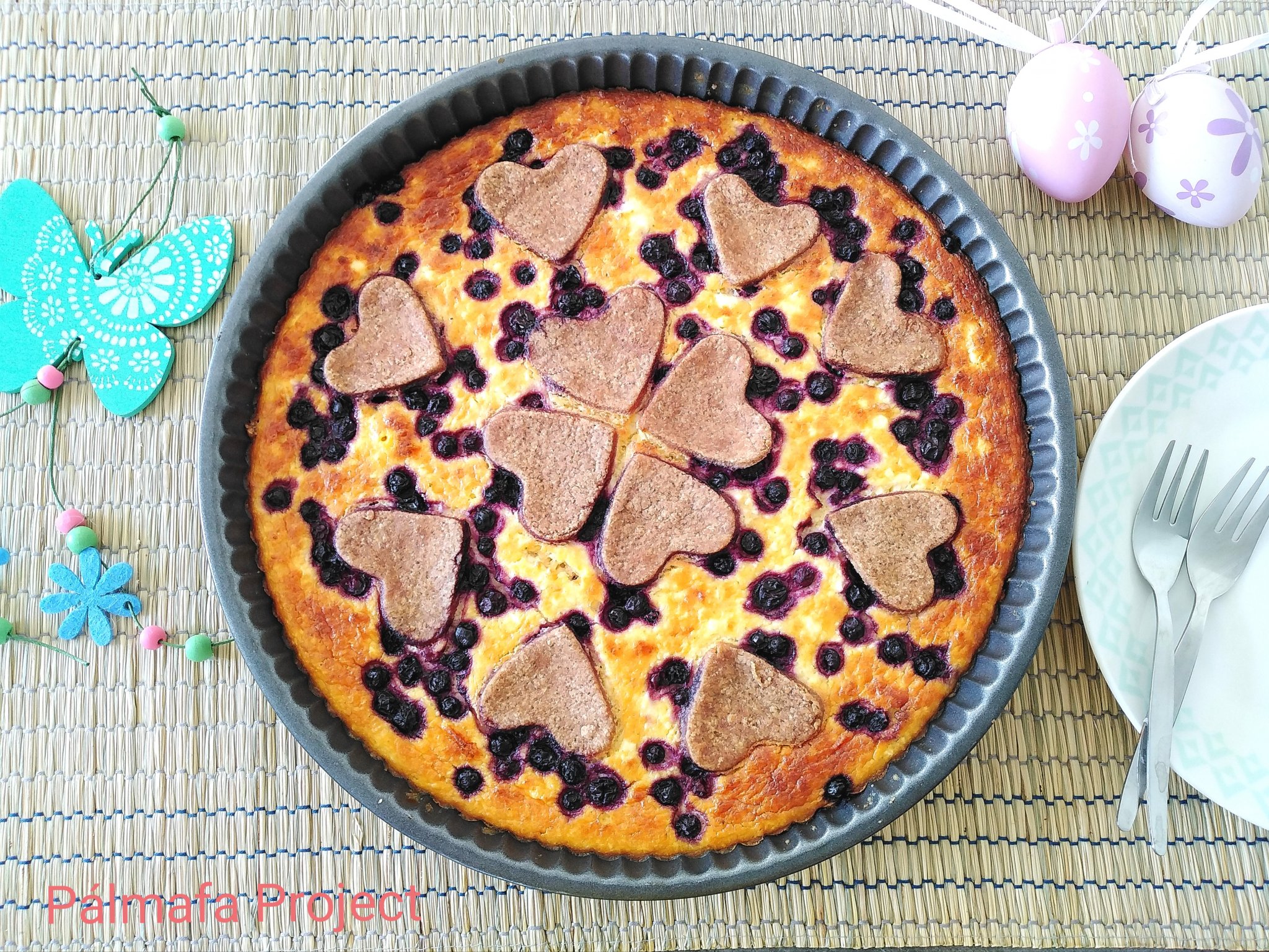 Sütőt előmelegítettem 180 fokra. A tészta nyújtásával nem babráltam, elvileg 2/3-a menne a piteforma aljába és a tetejére pedig a maradékból kéne rácsokat varázsolni, valószínűleg túl nagy volt a piteformám, ezért jutott kevesebb a tetejére. Én szeleteket vágtam a tészta gombócból, belehelyeztem őket a tepsibe és kézzel belenyomkodtam, ráöntöttem a krémet, a maradék tésztát kicsit kilapítottam a pulton és szívecske formákat szaggattam belőle, majd a krémre helyeztem. Sütőbe betoltam és kb. 45 perc alatt megsült, akkor jó, ha már nem rezeg a közepe és a tészta is megpirul a tetején, ezt még lekenhetitek tojással, én nem tettem.