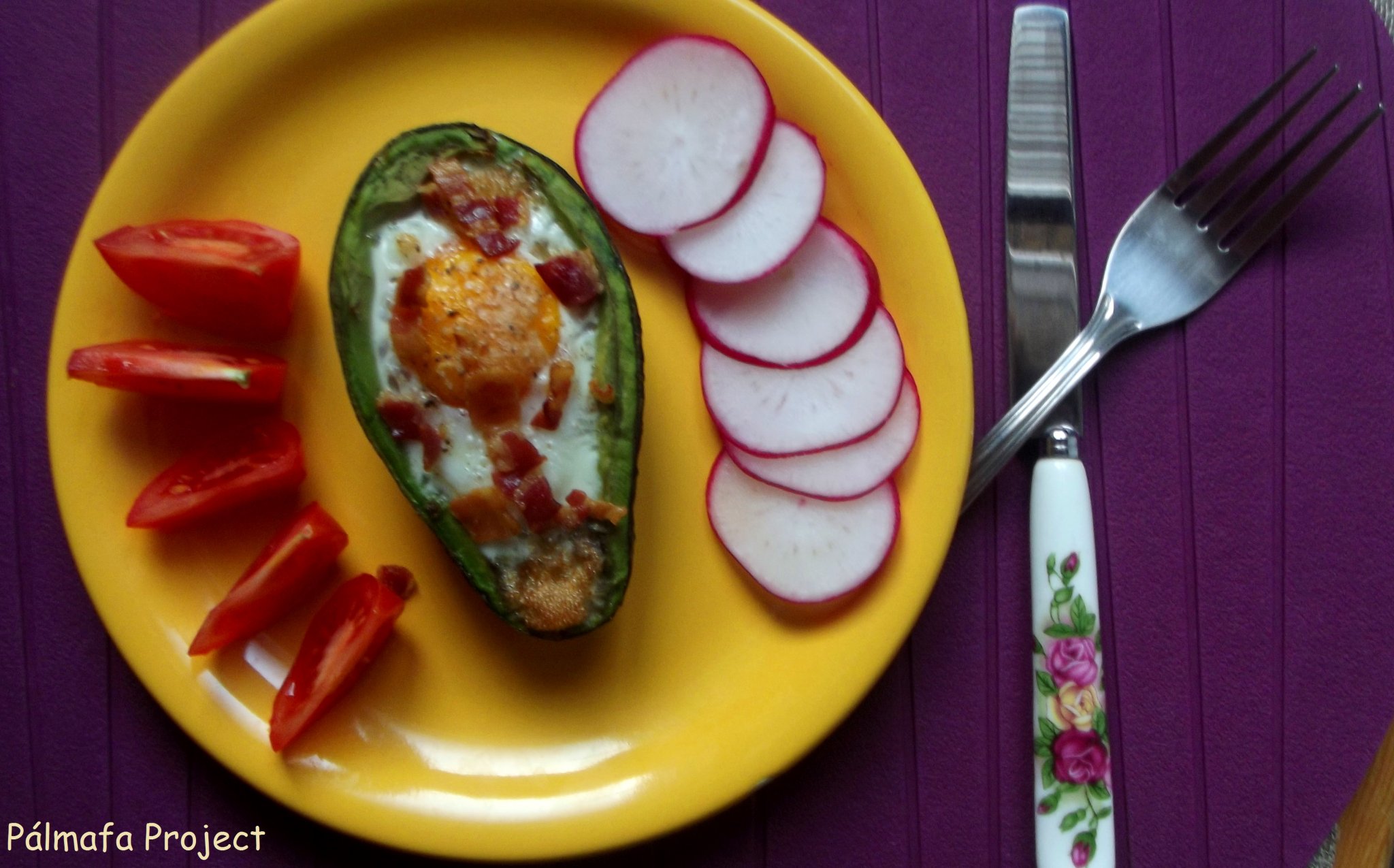 Sóztam, borsoztam, és 200 fokra előmelegített sütőbe toltam, kb. negyed órára. Ez attól is függ ki mennyire szereti lágyan vagy keményebben a tojást. Ezután felkockáztam a bacont és egy száraz serpenyőben megpirítottam, majd mikor az avokádó elkészült a tetejére szórtam.