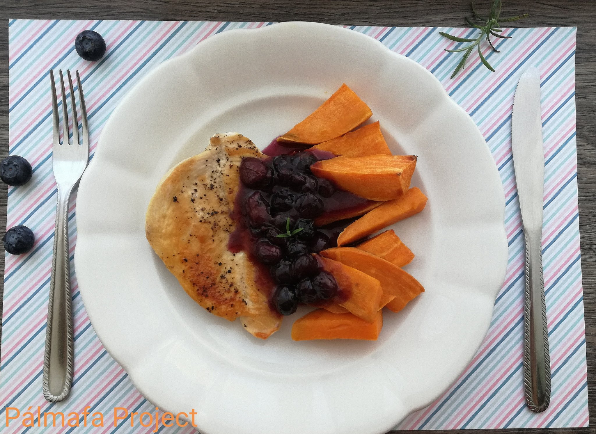 Sült csirkemell áfonyamártással és édesburgonyával