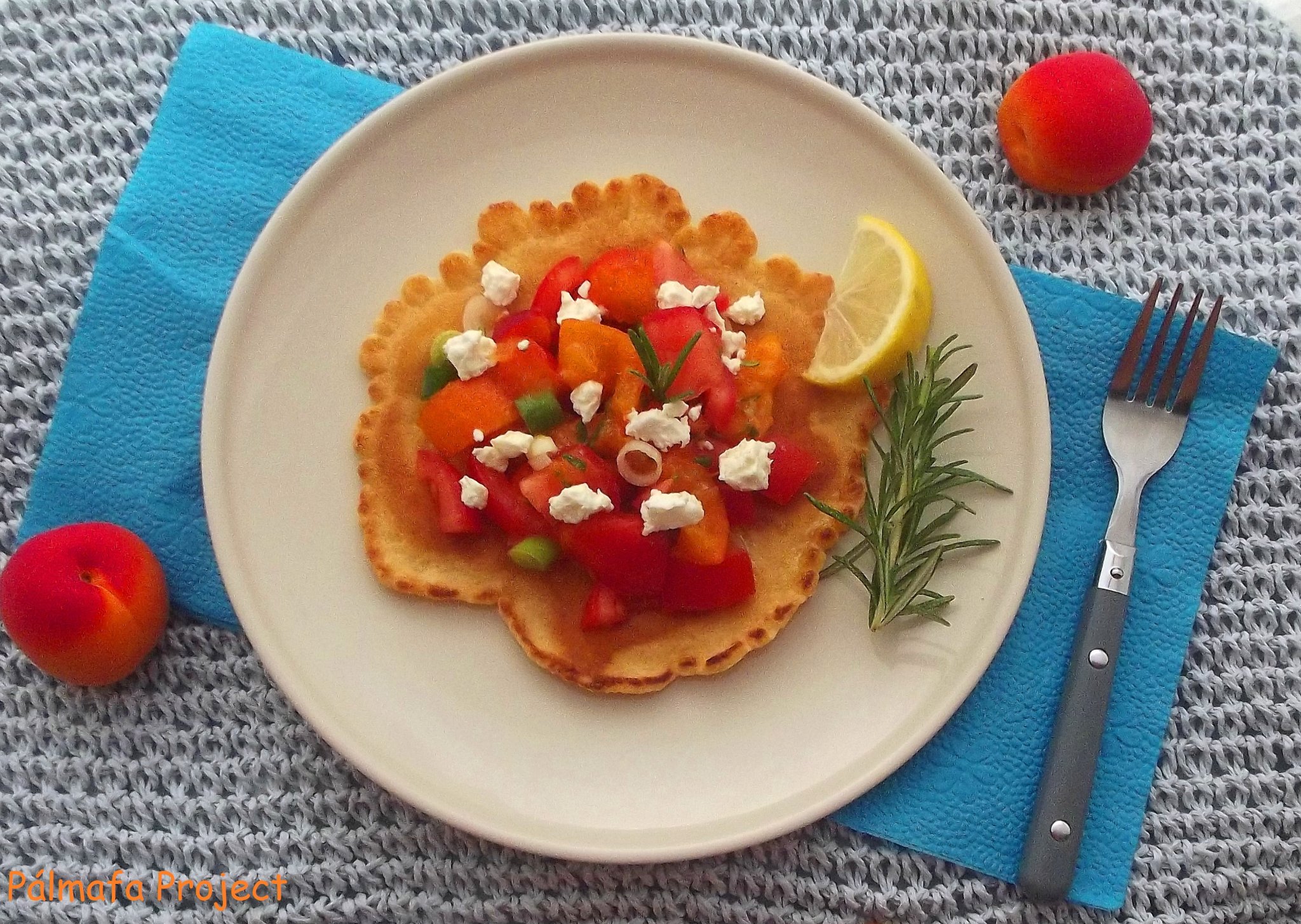Barack csicseriborsóliszt Kecskesajt Palacsinta Paradicsom Rozmaring