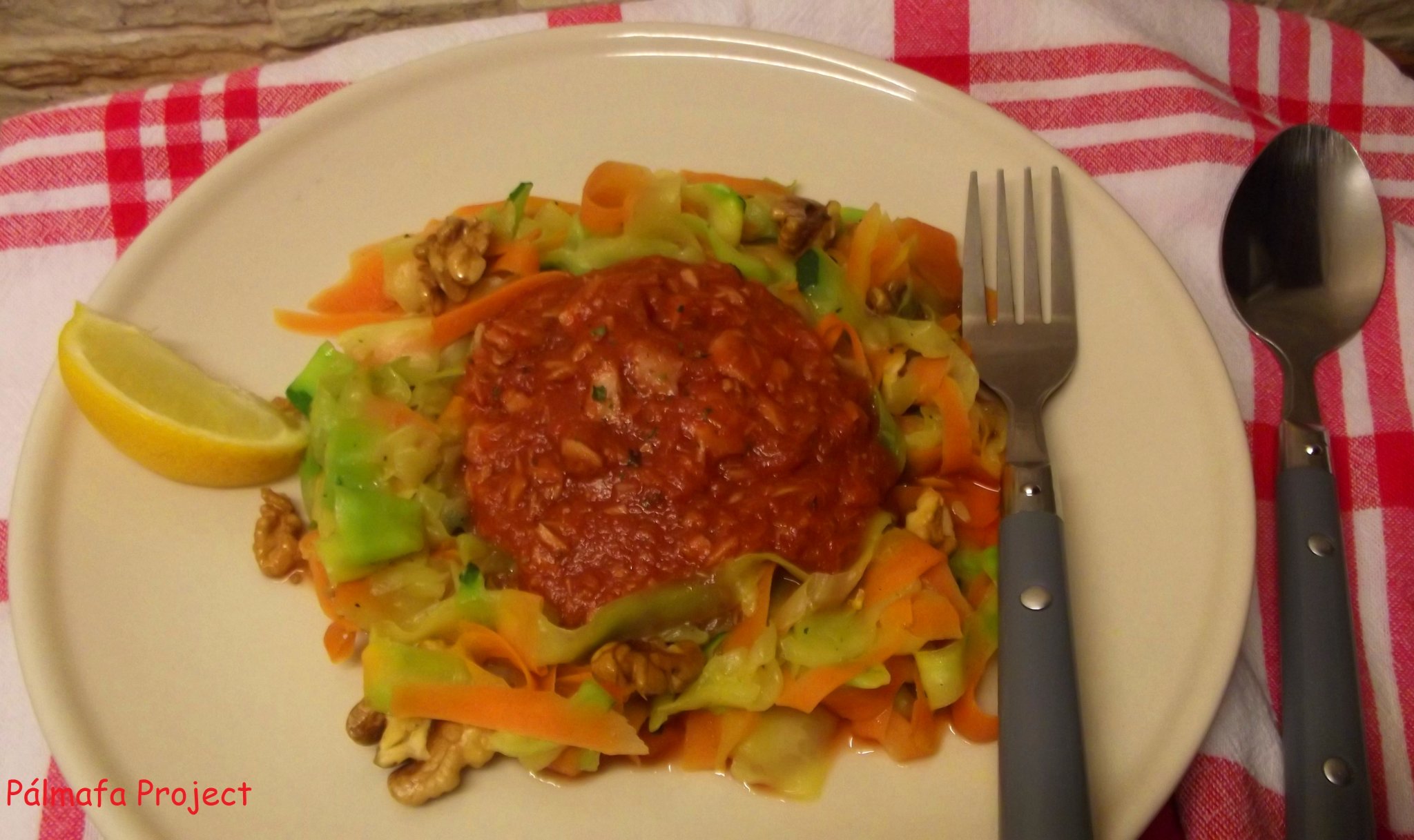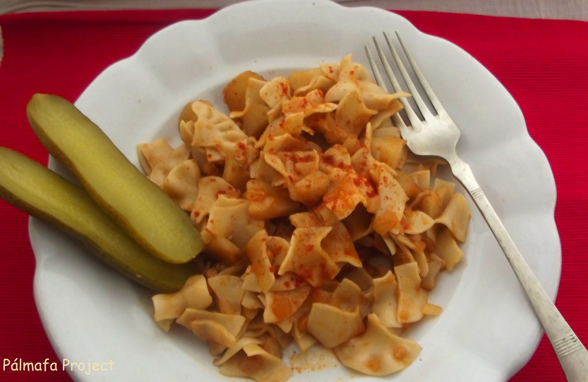 Végül összekevertem a tésztával és savanyúsággal tálaltam.