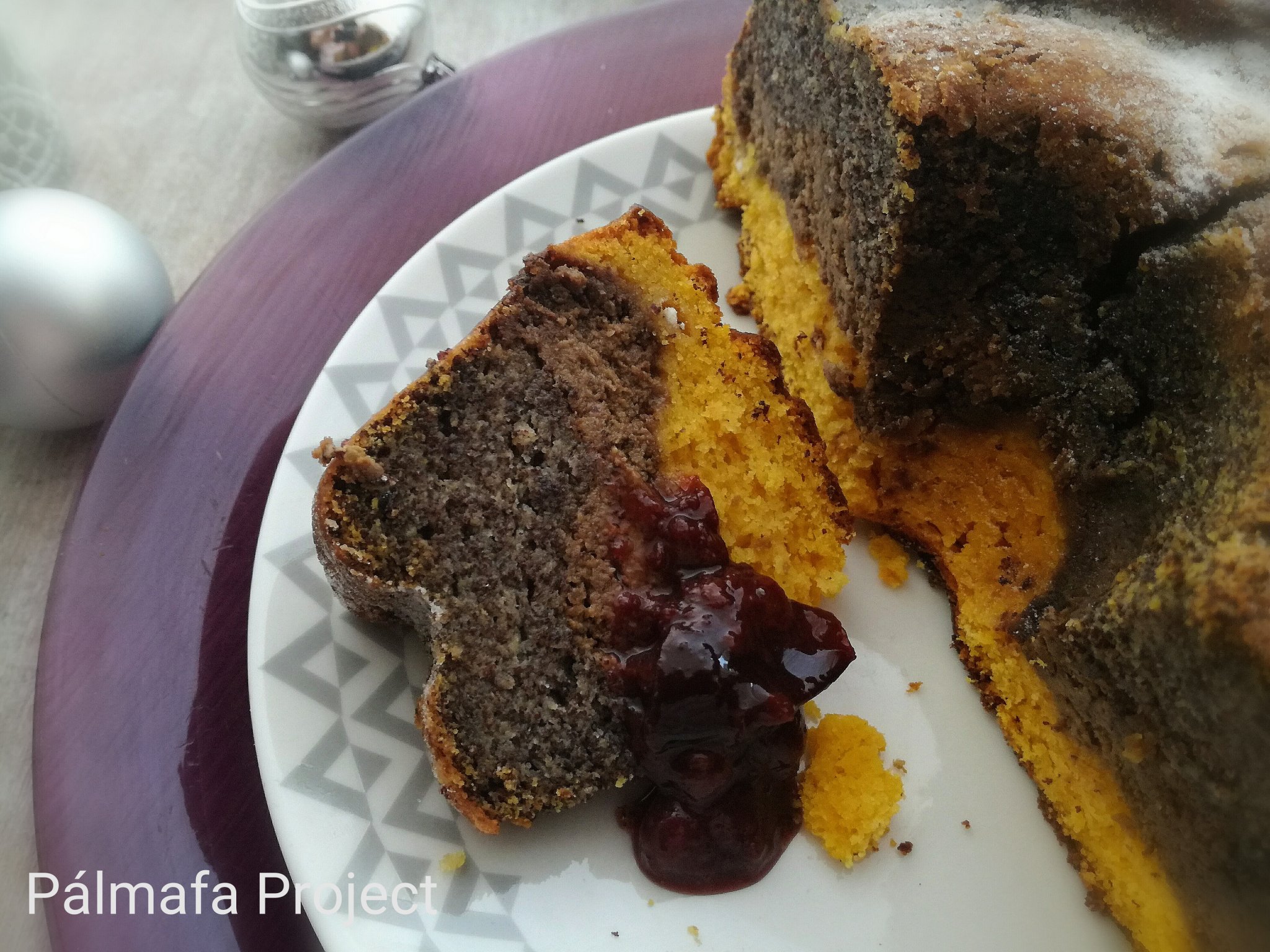 Ezután a forma aljába öntöttem először a mákosat, majd a diósat és végül a tönkölylisztes egyveleget. Sütőbe toltam és jó 1 óráig sütöttem. Félúton viszont nagyon pirulni kezdett a teteje, letakartam alufóliával. Tűpróbával ellenőrizzétek, hogy átsült-e.