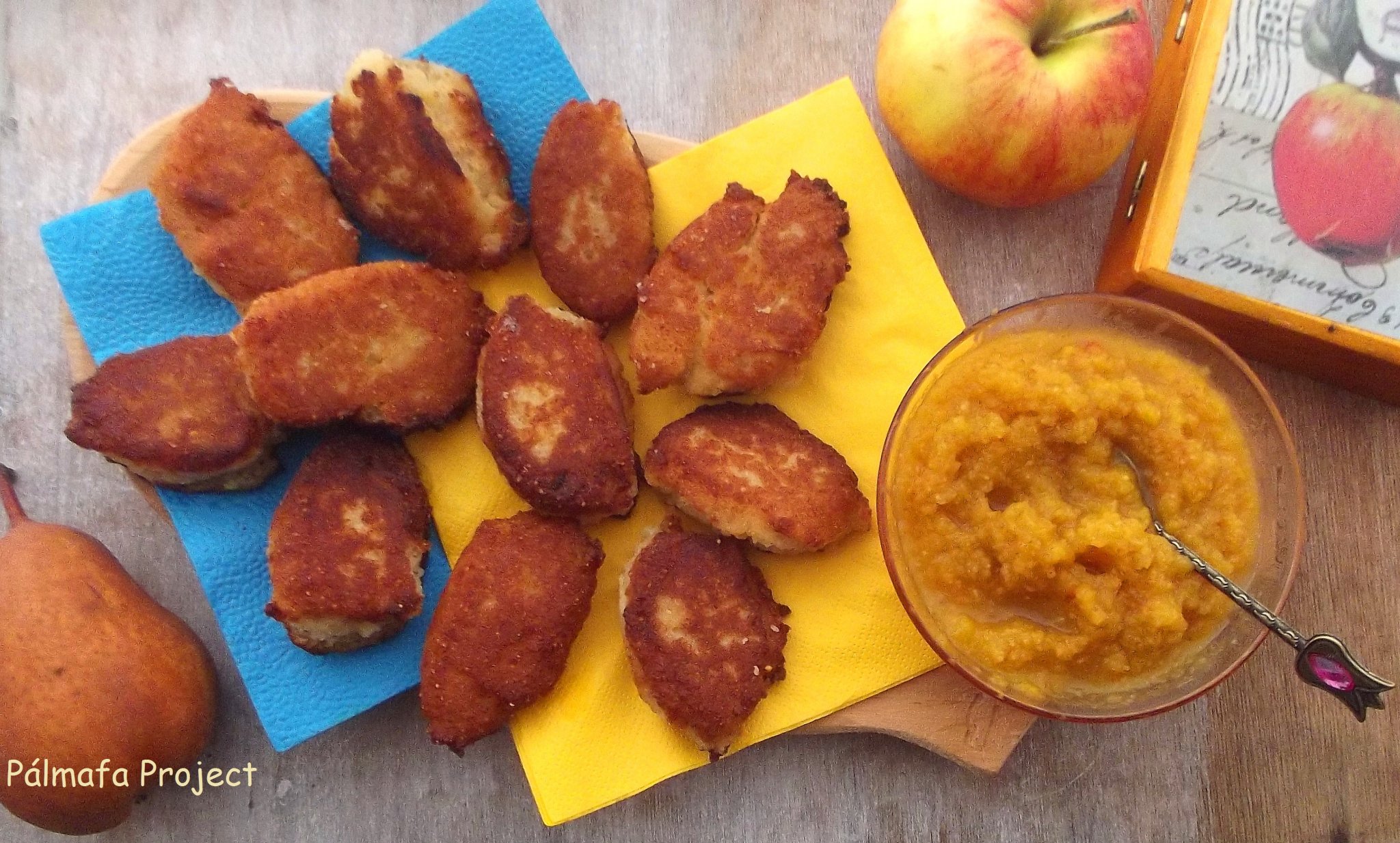Amíg a tészta kelt, lereszeltem az almát, a körtét és a gyömbért, hozzáadtam a tököt és leturmixoltam, végül pár csepp citromlével meglocsoltam.