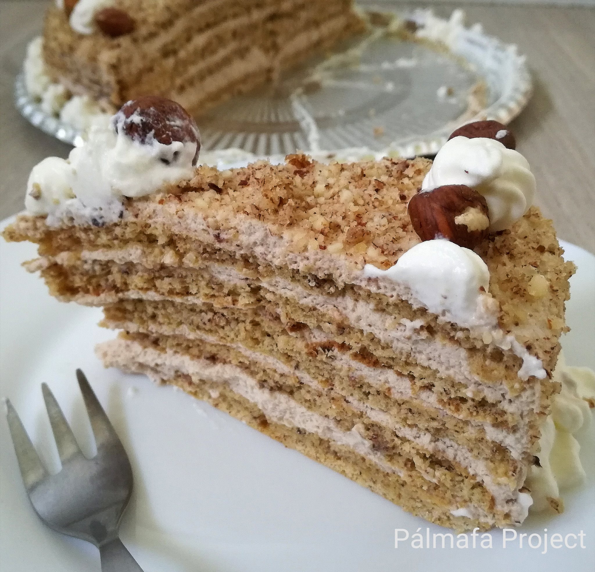 Olajbogyó blogon találtam amúgy a receptre és nagyon megörültem neki, mert olyan tortát szerettem volna, aminek a tésztájában is mogyoró van, sőt csak az van, liszt nélkül. Csináltam már hasonlót, hiszen az én szülinapi tortám az utóbbi években a Szatmári almás máktorta, aminek a tortalapjai ugyanezen az elven működnek, vagyis darált mák és tojás kerül a tésztába.