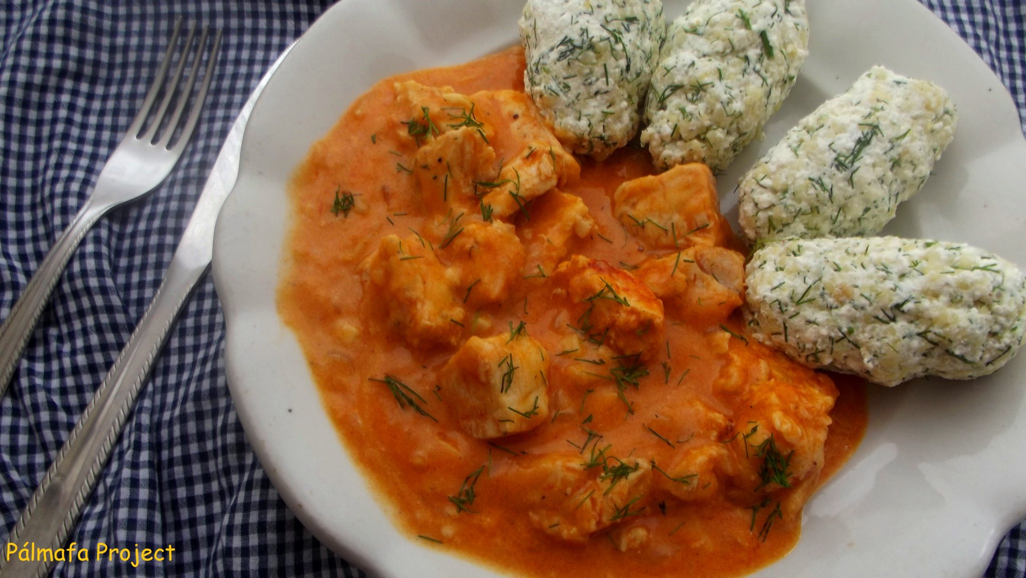 Harcsapaprikás kapros túrós kölesgombóccal