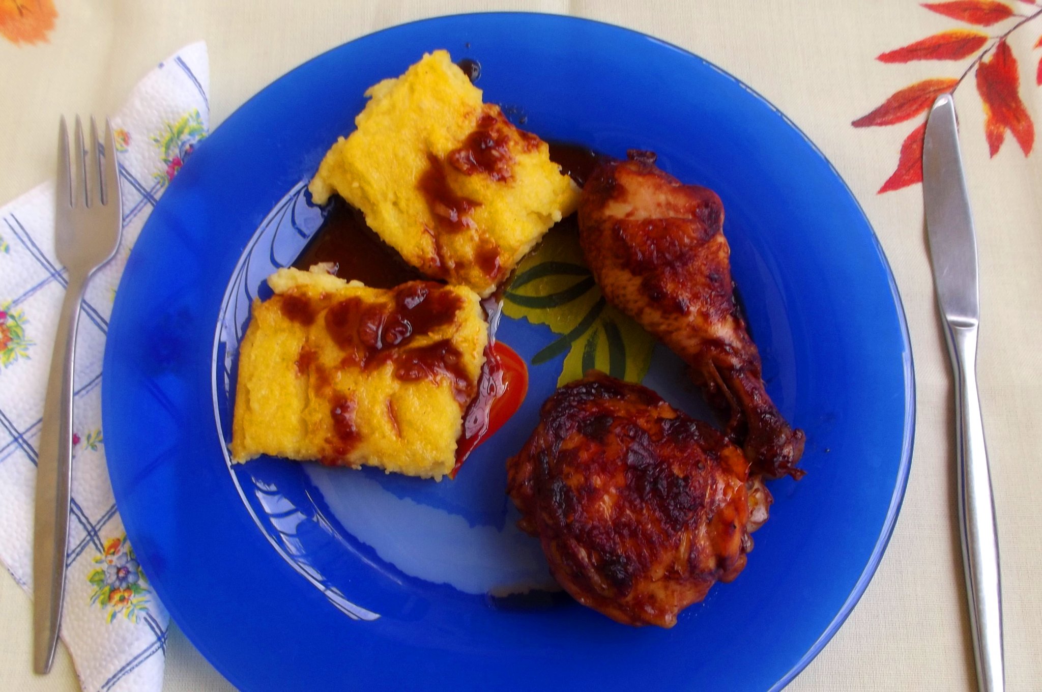 Elmerültem a polentában nyakig, ugyanis parázs vita keletkezett a konyhában arról, hogy akkor az most kukoricalisztből vagy darából készül? A Zédsanyám aszonta az dara, mert épp előtte olvasta meg az újságban a frankót, én meg azt, hogy úgyis úgy csinálom, ahogy én akarom… A helyes megoldás, hogy akár előbbi, akár utóbbi megfelelő. Mindegyiket próbáltam, a liszttől kicsit lágyabb lesz az állaga, a kukoricadarától pedig – főleg ha még sül is -, ropogósabb. Lehet vízben és tejben is főzni, nem muszáj sütni, maradhat lágy krumplipüré állagú, akkor nevezhetjük puliszkának is. Kinek a pap, kinek paplan… Mindegyik jól passzol az édesen sós, enyhén csípős, kínai ízvilágot idéző szaftos húshoz. Úgyhogy, mielőtt kínai kaját rendeltek, ami dugig van tartósítószerrel és ízfokozóval, próbáljátok ki ezt inkább! A recept eredetije innen származik.