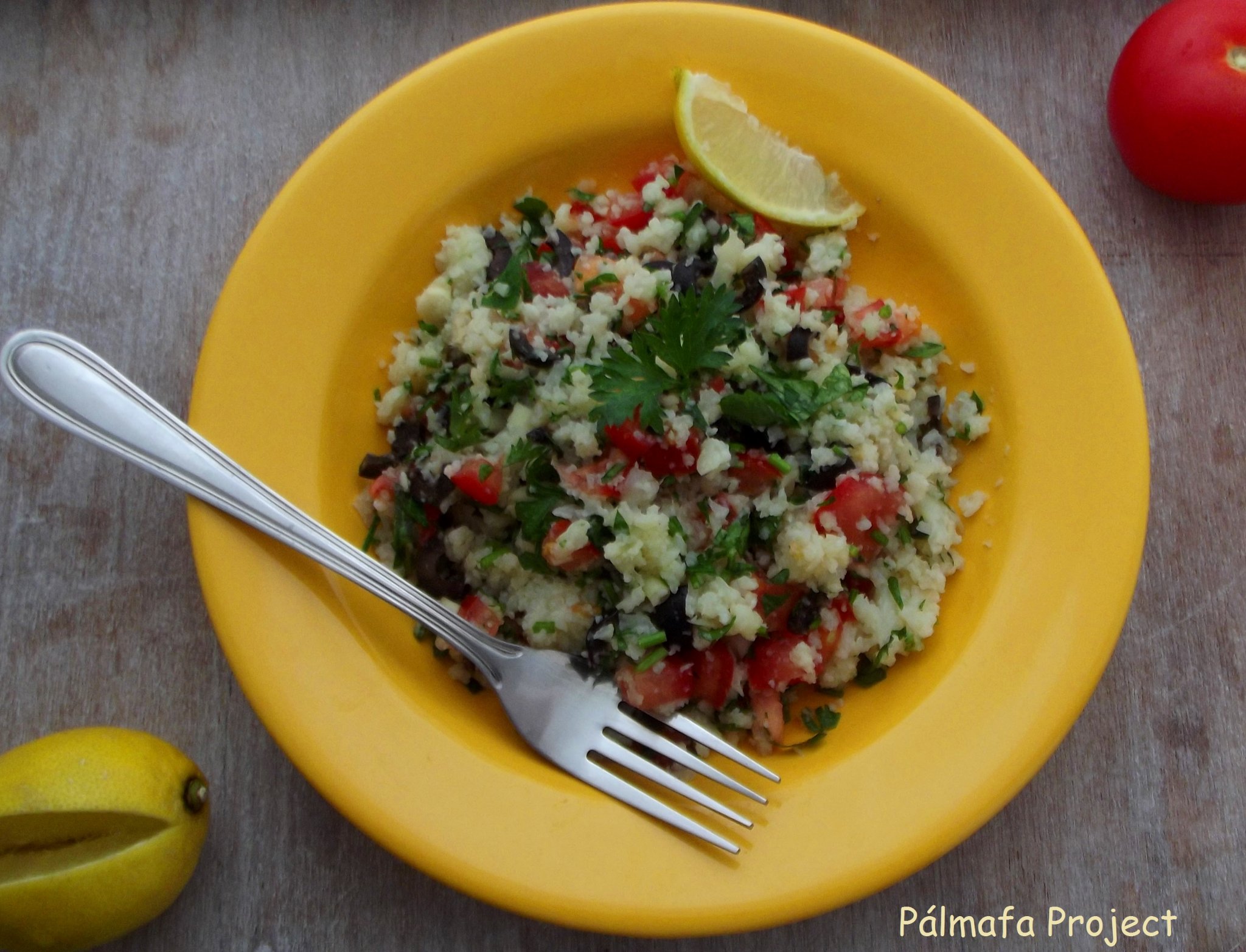 A tabbouleh eredetileg egy arab petrezselyemsaláta, amiben a kuszkusz az egyik főszereplő és nem titok, hogy az én nagy kedvencem. Ez pedig egy alternatív megoldás lett most, amiben a búzatöretet a karfiol helyettesíti.