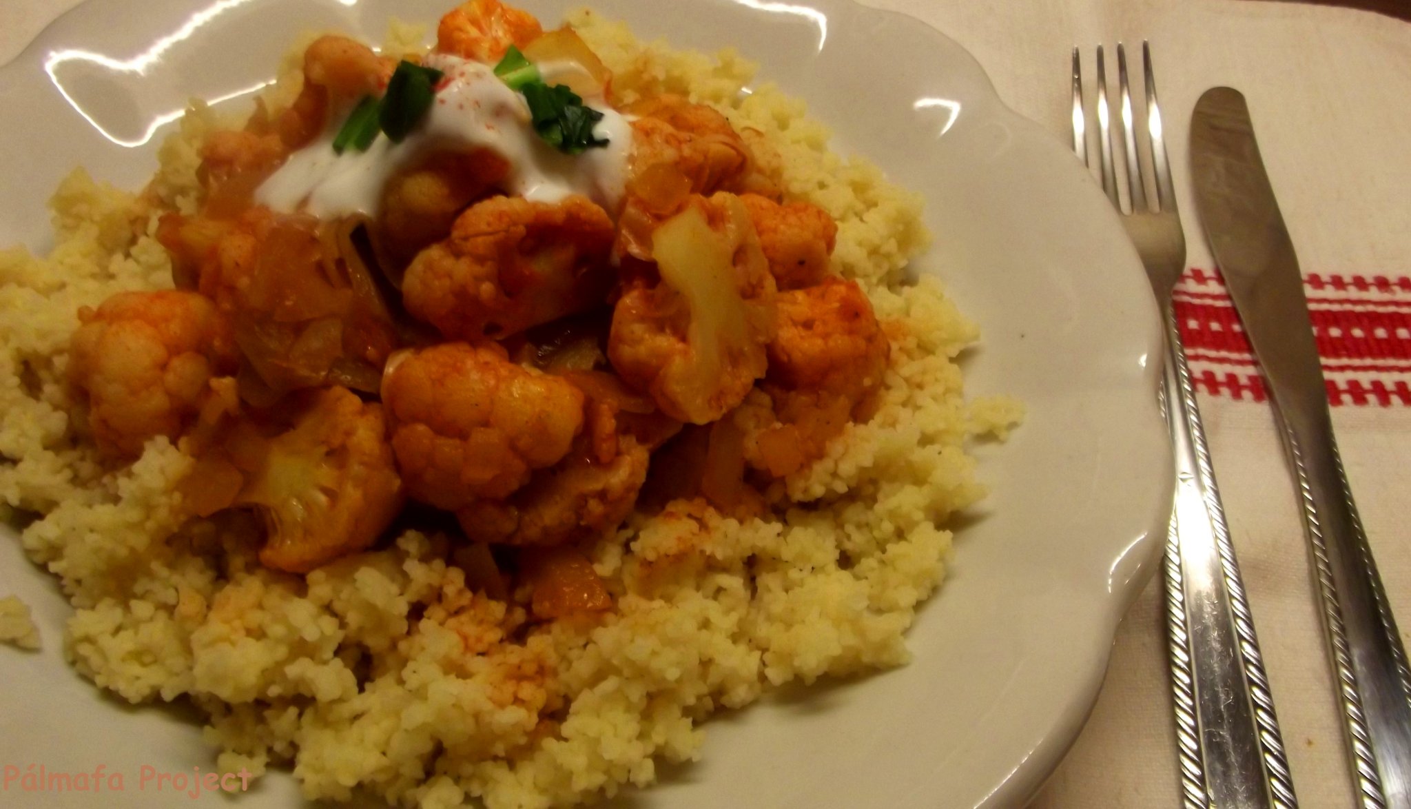 A kuszkuszt felöntöttem kétszer annyi forró vízzel, picit megsóztam, lefedtem és 5 percre magára hagytam, míg megpuhul, aztán tálalható is a karfiollal a tetején. Mehet rá még tejföl ízlés szerint.