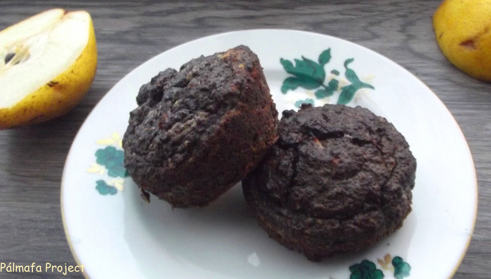A látszat csal, ők itt kérem nem szénné égett muffinok, hanem brutál mákosak! No liszt, csak a mák, és nem tud kiszáradni, hiszen körte van benne, ami gondoskodik róla, hogy szaftos maradjon.