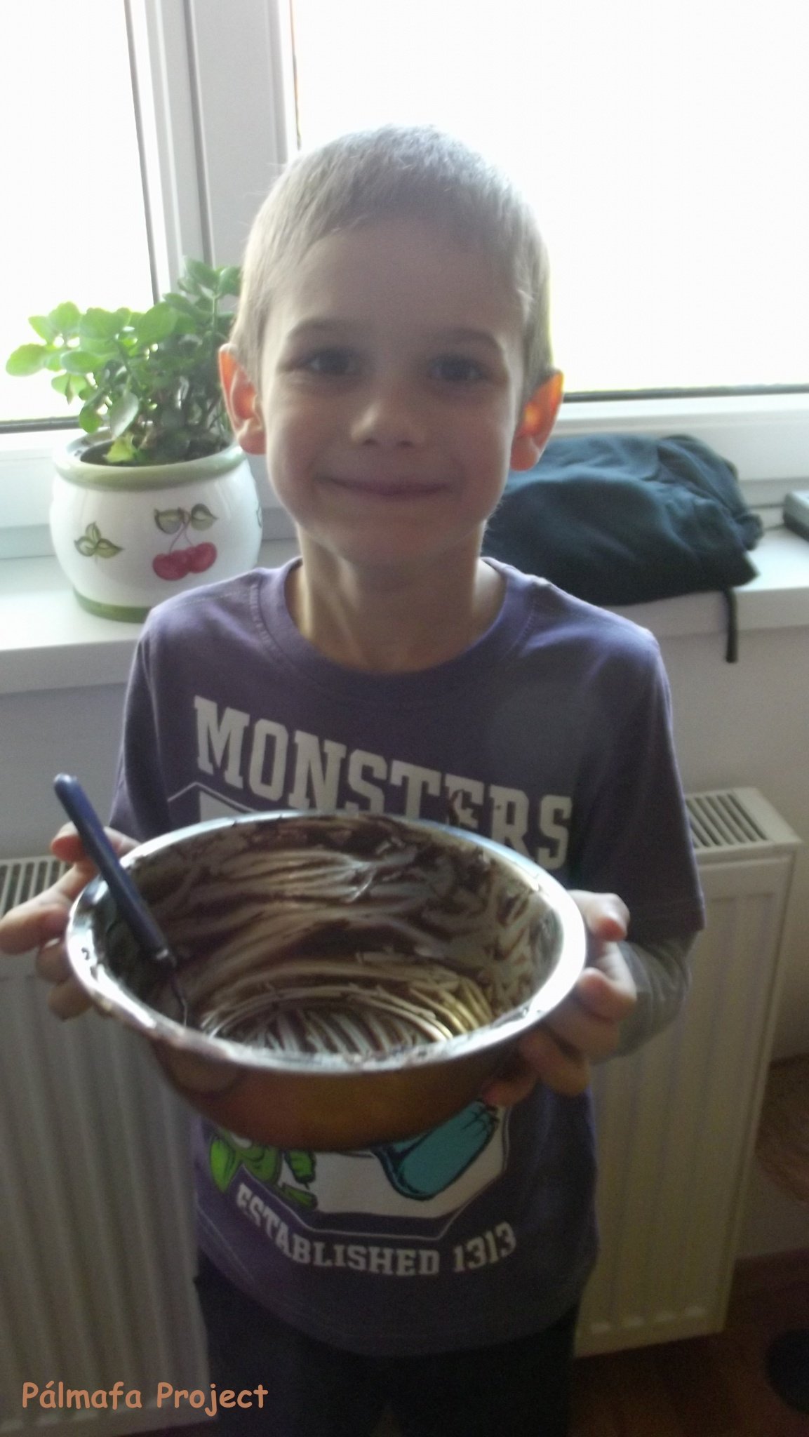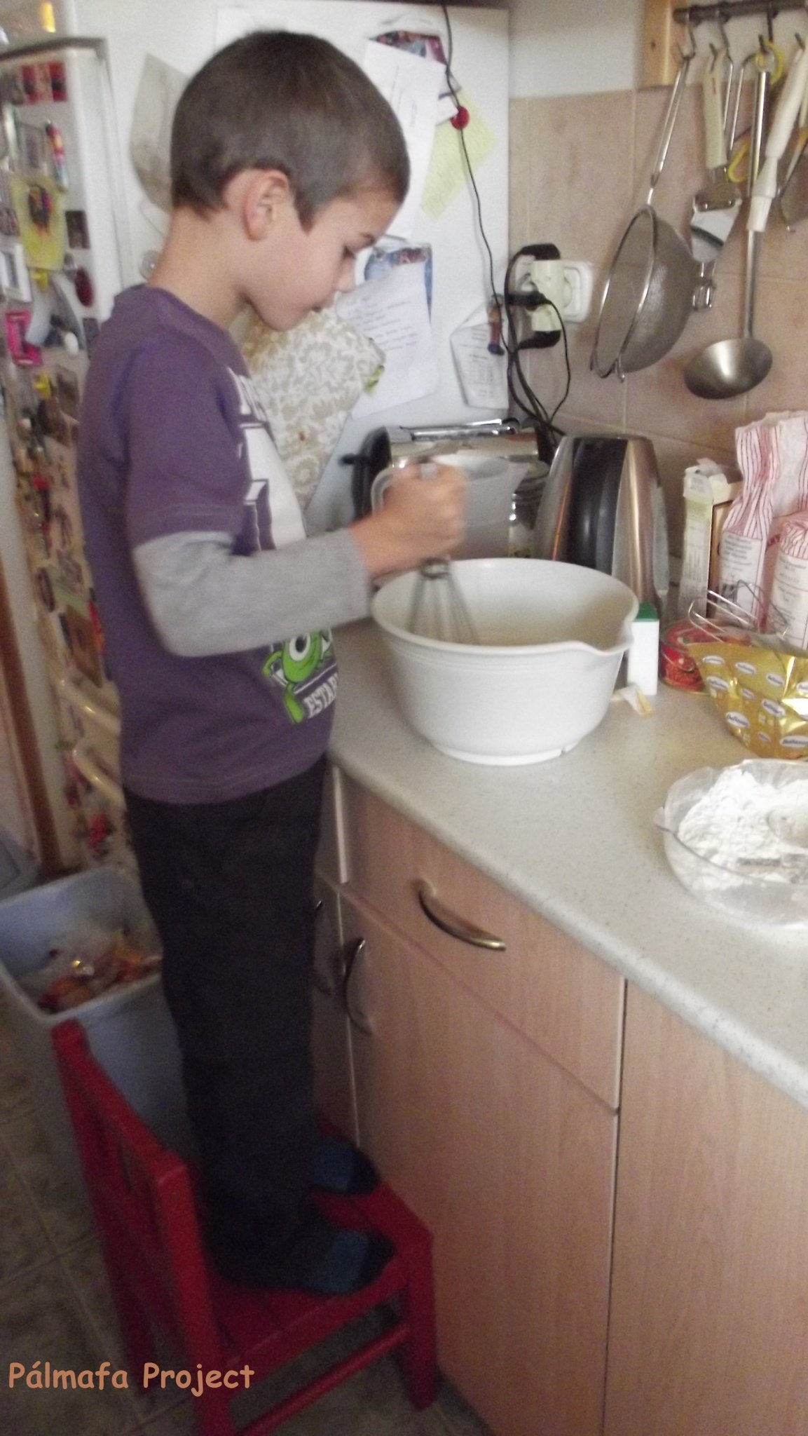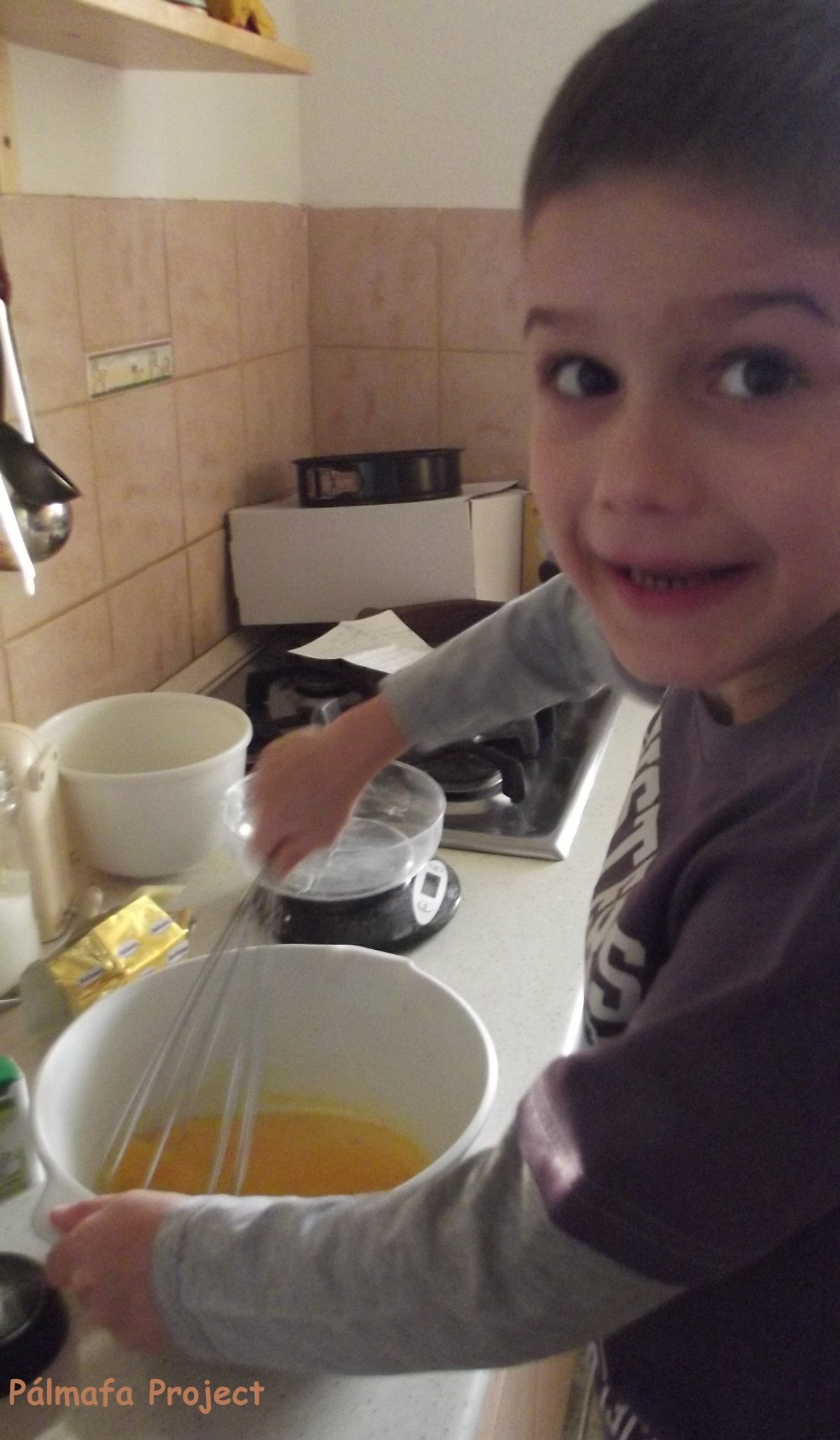 A torta elkészítése úgy kezdődik, hogy hívjuk egy jó pasit a konyhába, aki vígan kever, kavar, habot ver fel. A barátnőm egyik kisfia Kende, erre mindig önként jelentkezik és profi kis kukta lett.