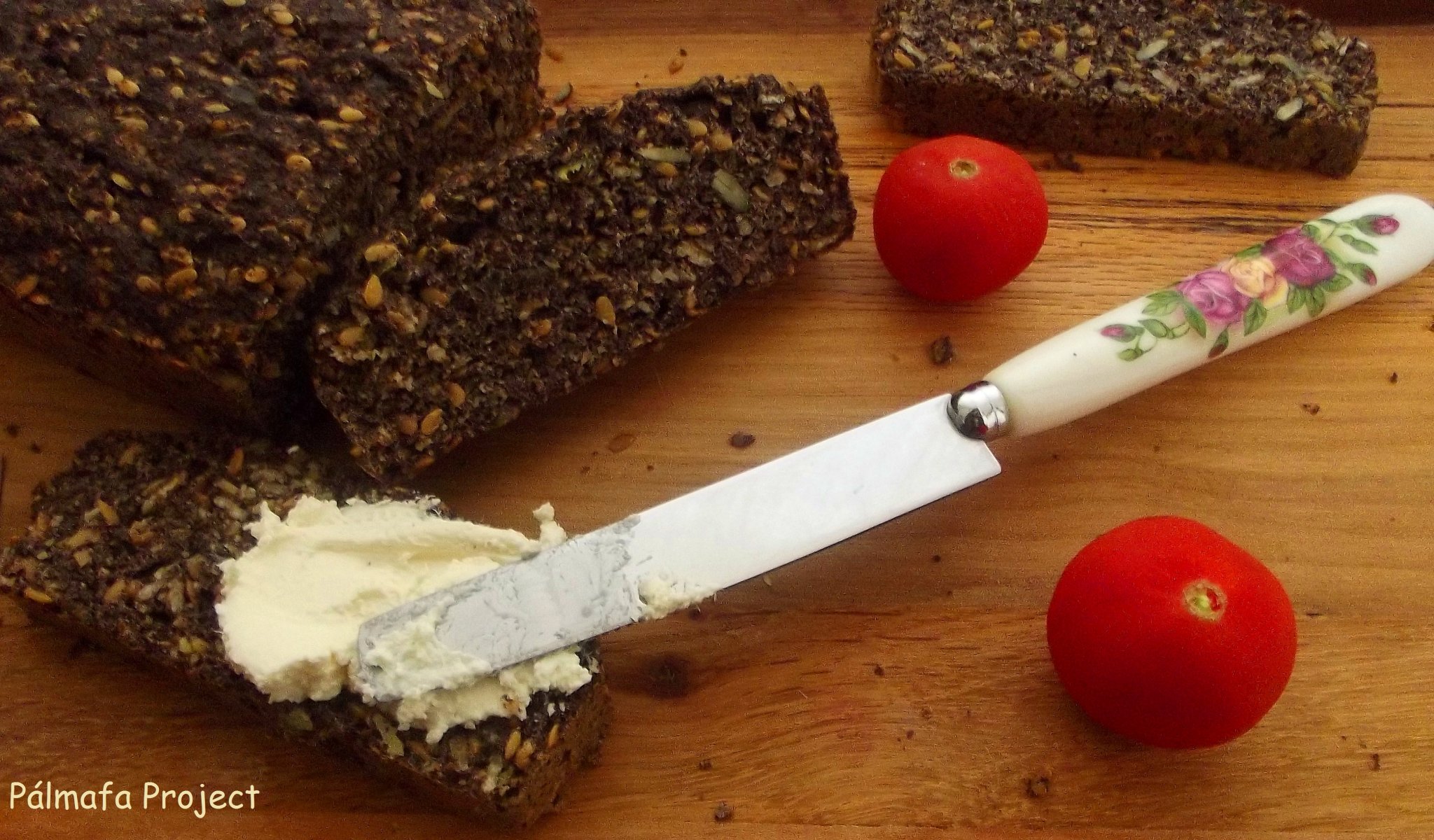 Jó lett tényleg, masszív kis kenyér, mindenképp igényel a tetejére valami krémeset, akár sajtkrém, akár lekvár van kéznél, bármelyikkel tökéletes lesz. Szerintem nagyon jó vendégváró falatokat lehet belőle készíteni többféle feltéttel.