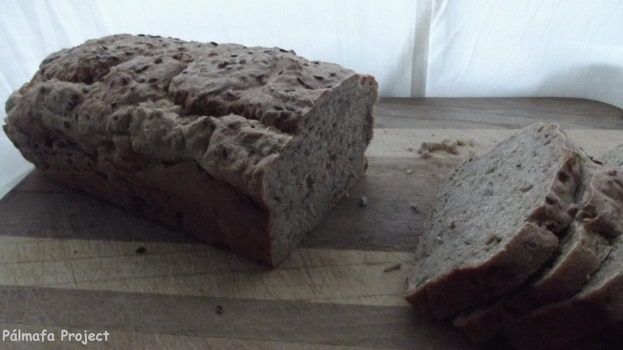 Ez most az eredeti verzió, igaz én több vizet tettem hozzá, de ez a liszttől függ elsősorban. Bármilyen magot lehet bele tenni, nekem most pár kanál lenmag volt elfekvőben, így az összes a kenyérben végezte. A lenmag egyébként nagyon jótékony magocska, a legtöbb és legtisztább esszenciális olajokat tartalmazza, ami a szervezet számára nélkülözhetetlen. Ezen a téren veri a diót és a tökmagot is nagy fölénnyel. Sok benne még az A, B, C, D, E-vitamin az ásványi anyagok sora meg olyan hosszú, hogy bele se kezdek, minden fontos megtalálható a lenmagban. Nem költséges hozzávaló, kimérve lehet kapni piacon, időnként pár kanál kenyérbe, salátába, joghurtban elropogtatható.