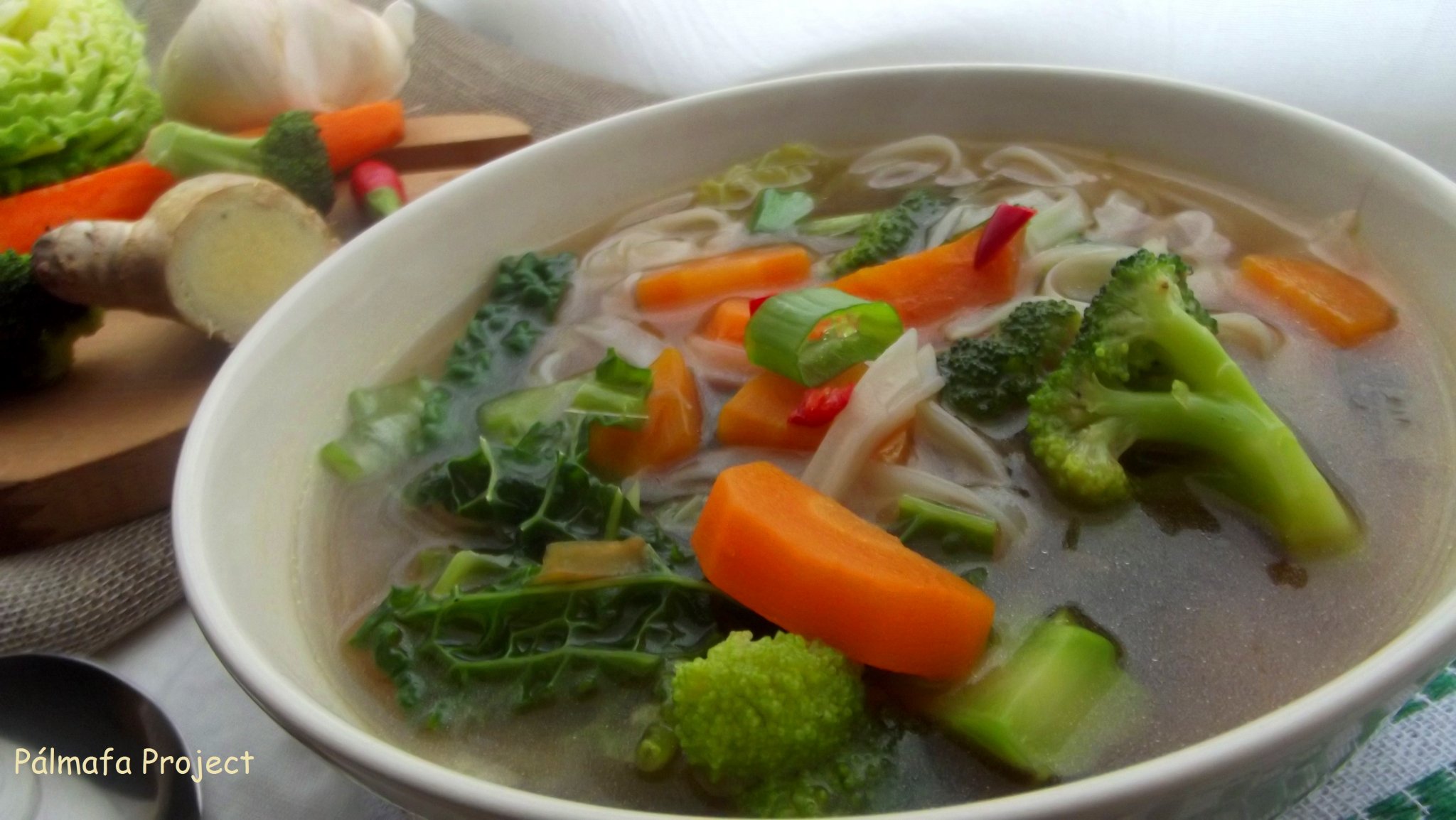 Chili, gyömbér sok sok zöldség és már ki is melegedtél! A vers itt véget ért, ez a max. amire képes vagyok, ez is biztos csak a chili egyik hatása. A másikról nem verselek. Inkább a levesről, mert az tök egyszerű, szinte bármilyen zöldség mehet bele, lehet sima káposztát, zellert, de akár kukoricát vagy borsót is beletenni, mindegyikhez passzolni fognak ezek a fűszerek.