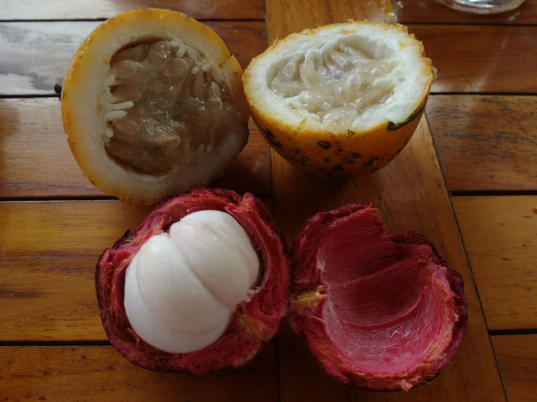 Egy kis gasztro kitérőt is teszek azért itt, hiszen reggelire bevásároltunk friss gyümölcsökből, mert én speciel besokalltam a tojástól. Így trükközök, mivel a reggeli gyümölcsadag pár kocka dinnye, plusz a turmix, viszont találtunk natúr zabpelyhet, amire ráborítottam a gyümölcslevet, és még kockáztam bele frisset a fenti képen láthatóak közül. No para, mi sem tudtuk, hogy mi micsoda mikor megvettük, csak a pink sárkánygyümölcsöt ismertem. A sötét lila gömb alakú a mangosztán, belül úgy néz ki, mint a fokhagyma, viszont édes, lédús.