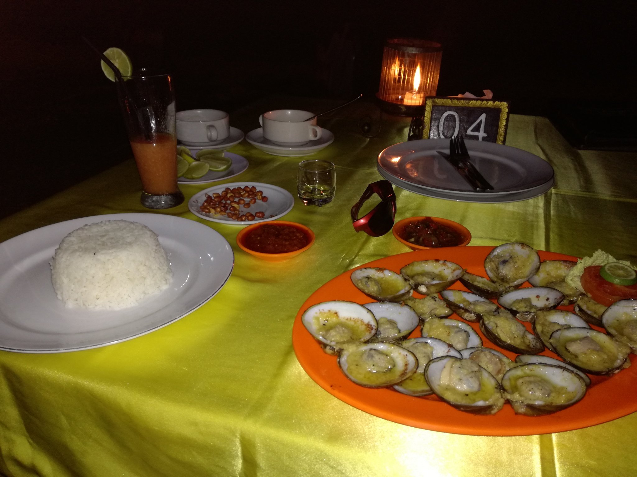 Nem tragédia persze, így jártunk, összességében nem volt rossz, bár én nem vagyok kagyló rajongó. Amúgy hangulatos volt, közben megjelentek balinéz táncosok is egy kis színpadon, illetve egy kisebb zenekar is elhúzta a vacsorázók nótáját, ha kérték, természetesen.