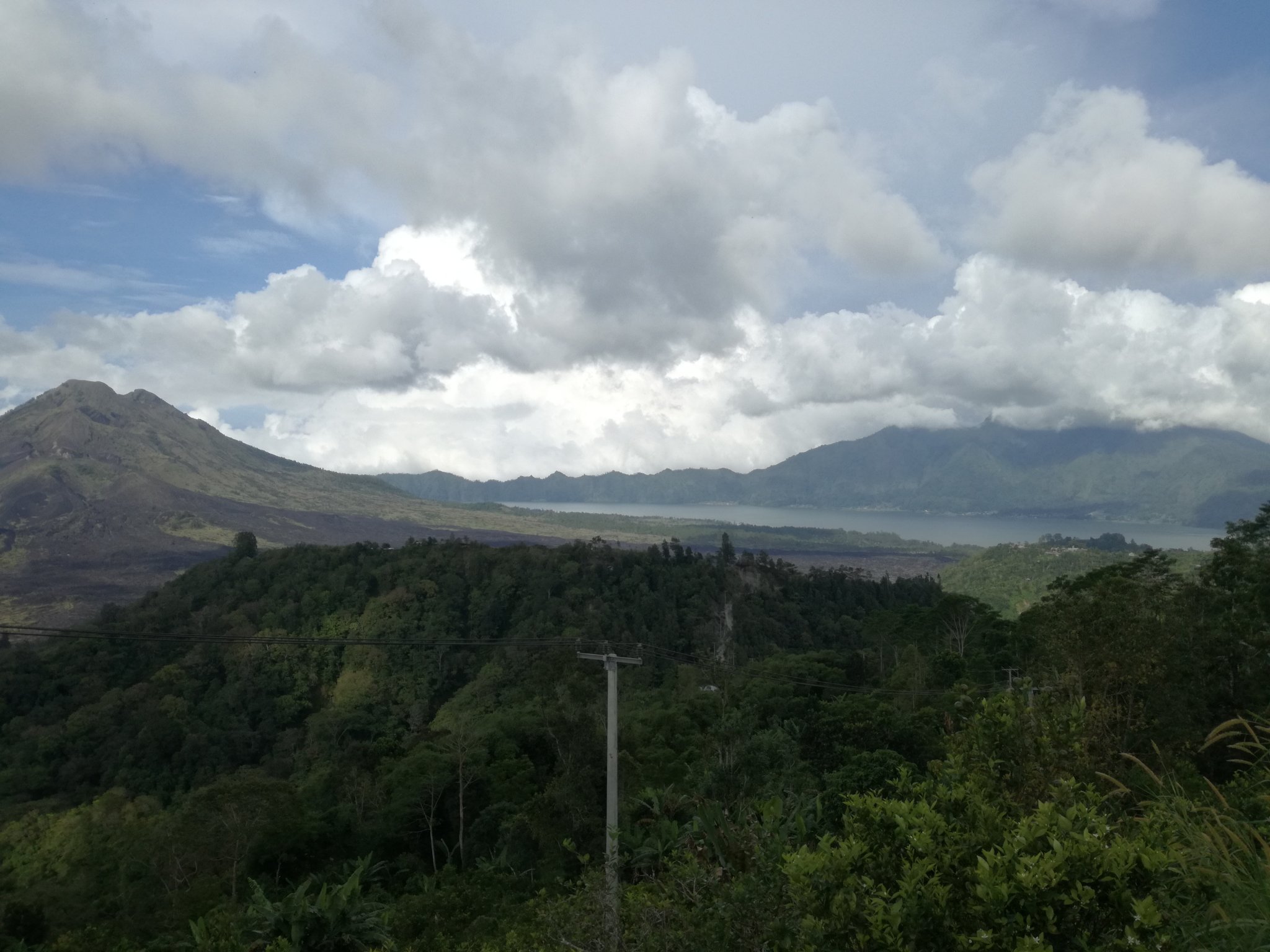 Rövid idő alatt megjártuk a templomot, ennyire díszeset még eddig nem láttunk, de természetesen itt is csak néhány része volt látogatható a helynek. Mikor ismét készen álltunk az indulásra, kiderült, hogy innen már csak a hazaút van hátra, mi pedig azt hittük, hogy legurulunk még a tó partjára is, de sajnos csak távolból láthattuk. Bal oldalon a Kintamani vulkán, a túlsó parton pedig a felhőkbe burkolózó Mt. Batur.
