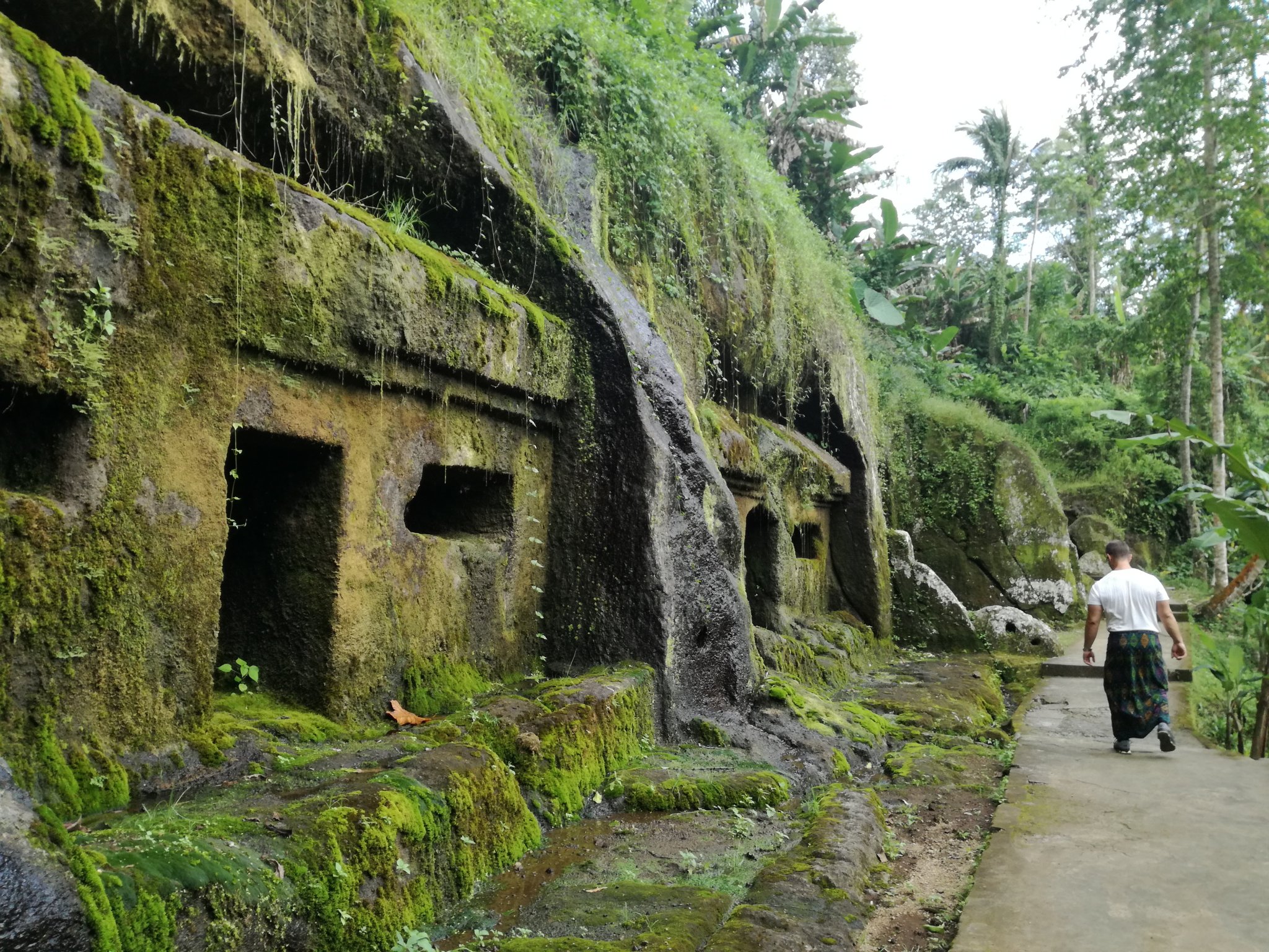 Lefelé sétálva rizsföldekkel (első fotón), majd égig érő pálmafákkal találkoztunk, a sírhelyek előtt pedig forrásvíz csordogál a falból. Aztán találtunk még érdekes, négyszögletes kis barlangokat, amik remetelakok voltak valaha illetve meditációs barlangokként használtak. Egy, a sok misztikus hely közül Balin. Mivel zárás előtt voltunk ott, turista alig és ezt nagyon élveztük, csend, nyugi, csak a természet szól.