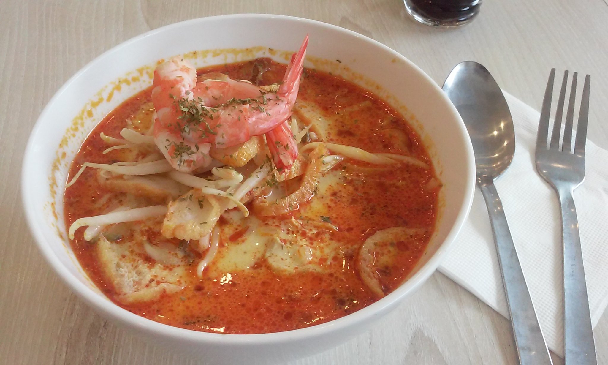 Laksa volt a neve azt hiszem, csípős, fűszeres, üvegtésztás leves némi rákkal megfejelve. Bevállalós voltam itt már, de megbízhatónak ítéltem az éttermet, és nem bántam meg, tényleg finom volt.