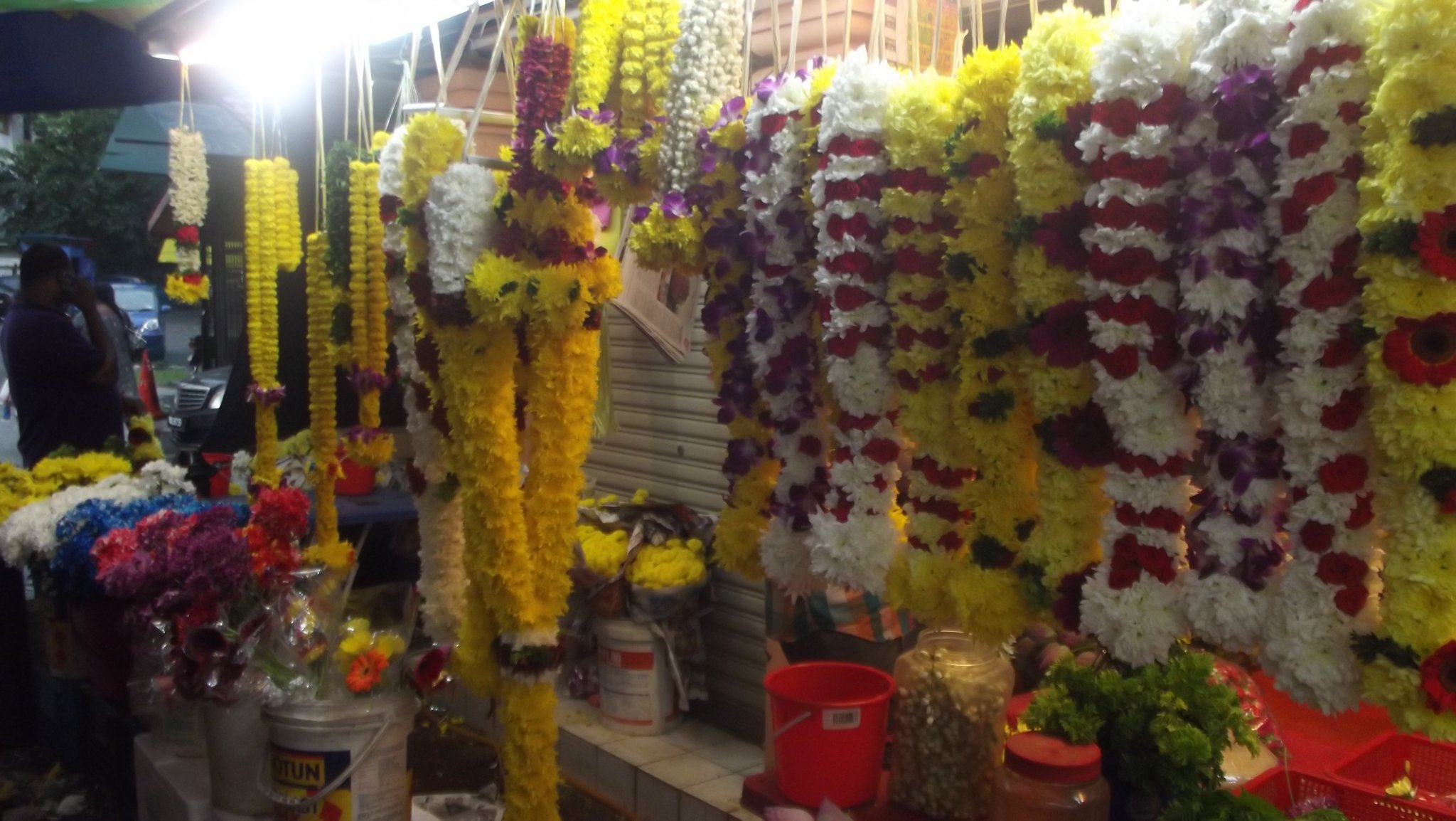 És a nélkülözhetetlen virágfűzérek, amivel a templomokat is díszítik. Egy komplett sikátor volt ezekkel tele.