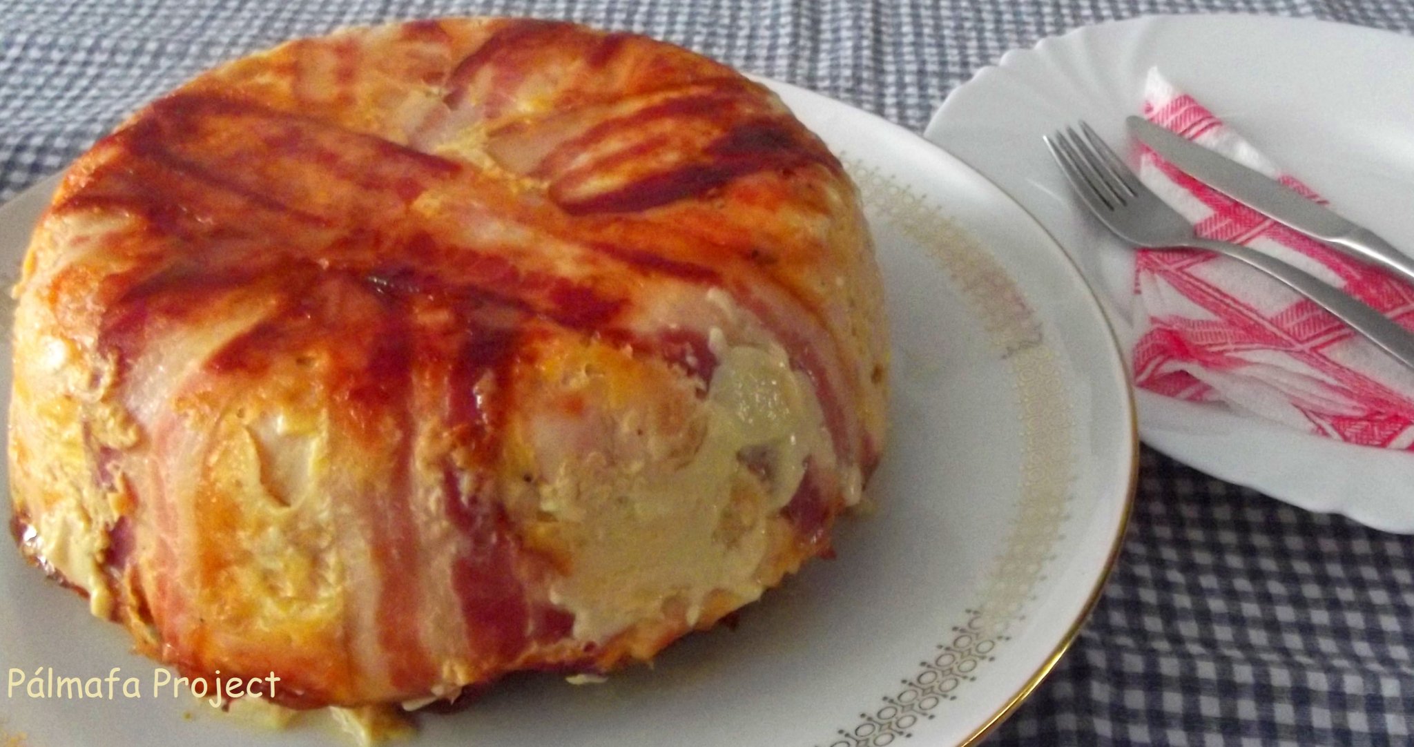 Ezzel az étellel nagyon nem lehet mellényúlni, ki ne szeretné a sajtot, a csirkét és a vékonyra szeletelt jól megpirult bacont egy tányéron látni? Pláne, hogy tortára hajaz, egy szál gyertyával és még némi zöldséggel felcicomázva még szülinapi tortának is elmenne, ha az ünnepelt nem szereti az édeset. Ő új tagja lett a repertoárnak, Anyukám …